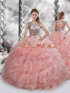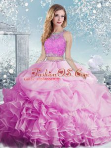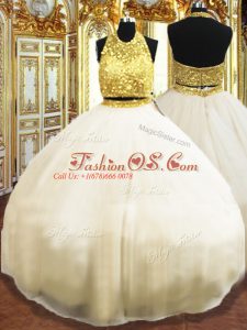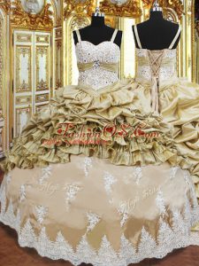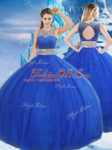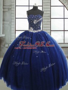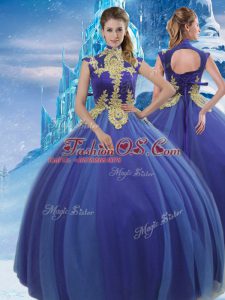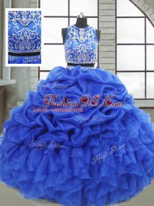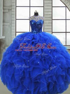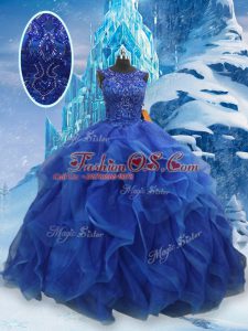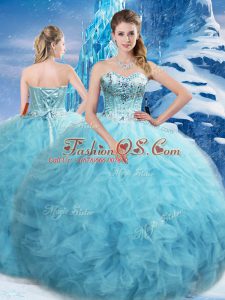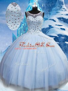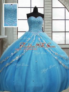 Sleeveless Floor Length Beading and Appliques and Sequins Lace Up 15th Birthday Dress with Baby Blue