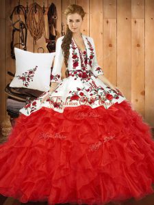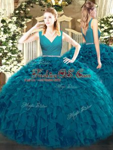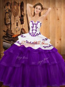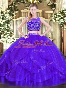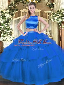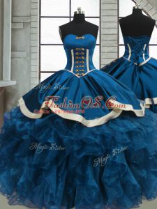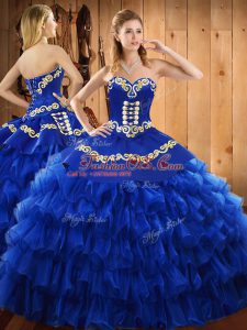 Graceful Blue Sweetheart Neckline Embroidery and Ruffled Layers Quinceanera Dress Sleeveless Lace Up