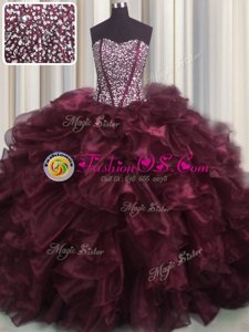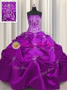 Super Floor Length Wine Red Quinceanera Gown Taffeta Sleeveless Beading and Appliques and Embroidery