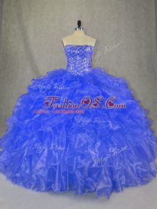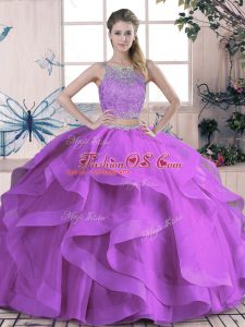 High End Scoop Sleeveless 15th Birthday Dress Floor Length Beading and Lace and Ruffles Purple Tulle