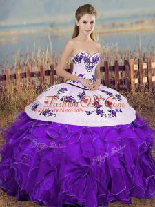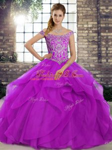 Decent Purple A-line Satin Off The Shoulder Sleeveless Lace Floor Length Zipper 15 Quinceanera Dress