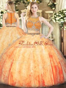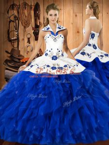 Chic Olive Green Halter Top Neckline Embroidery and Ruffled Layers Sweet 16 Dress Sleeveless Lace Up