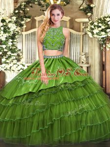 Great Sleeveless Tulle Floor Length Backless 15th Birthday Dress in Fuchsia with Beading and Ruffles