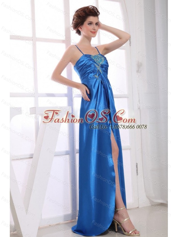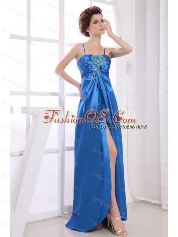Royal Blue Prom / Evening Dress With Spaghetti Straps Appliques and Beading High Slit