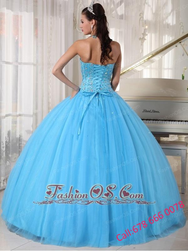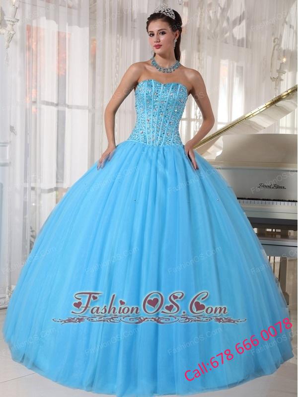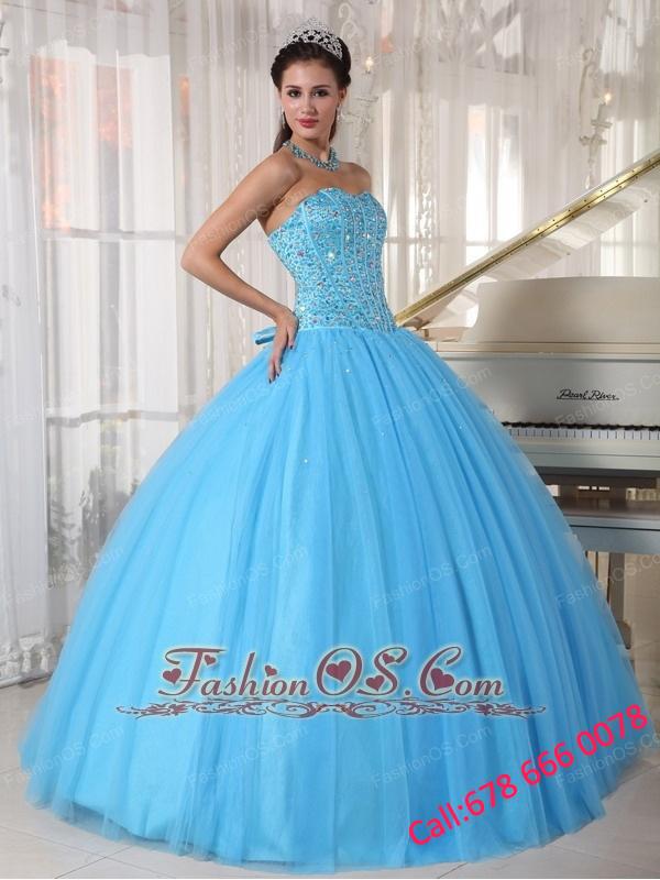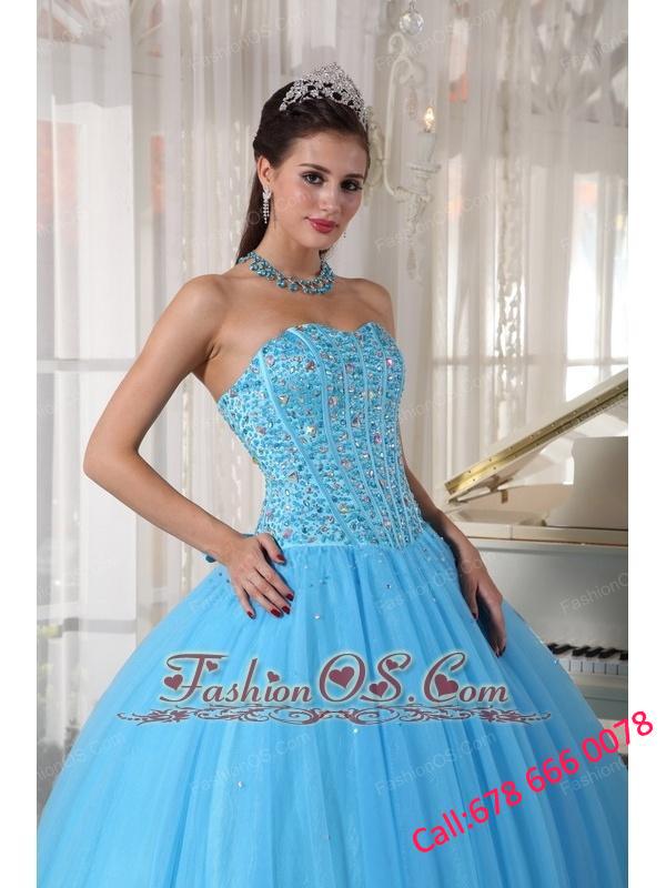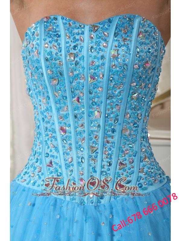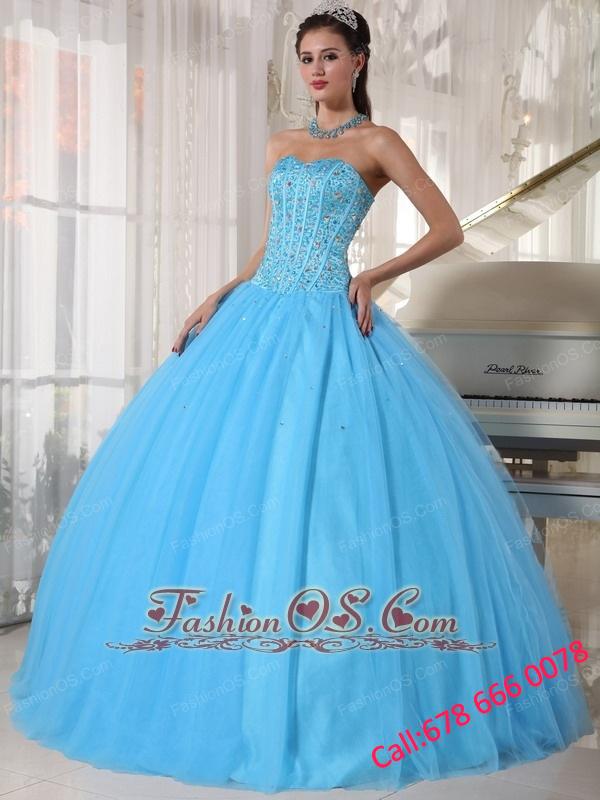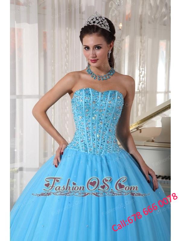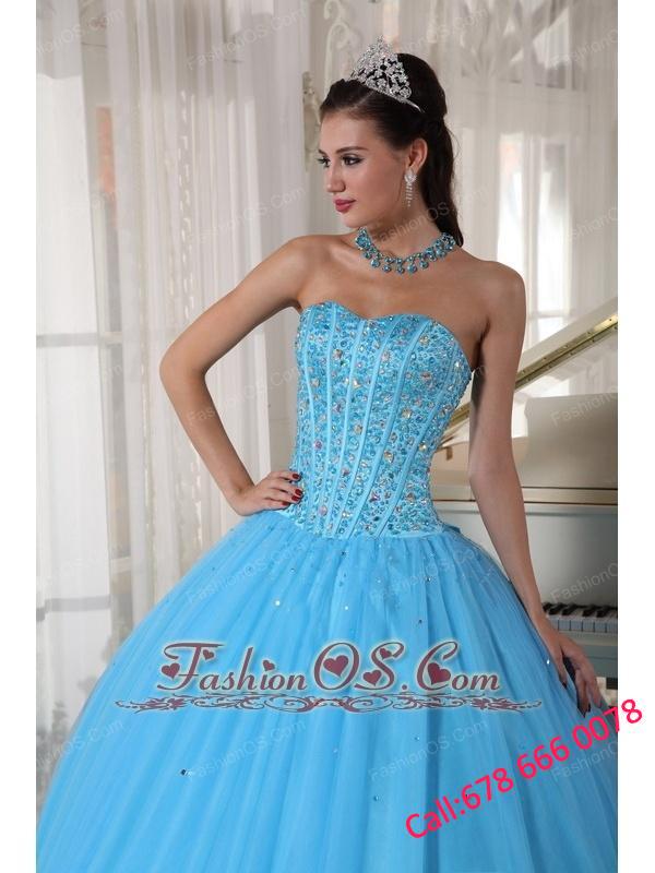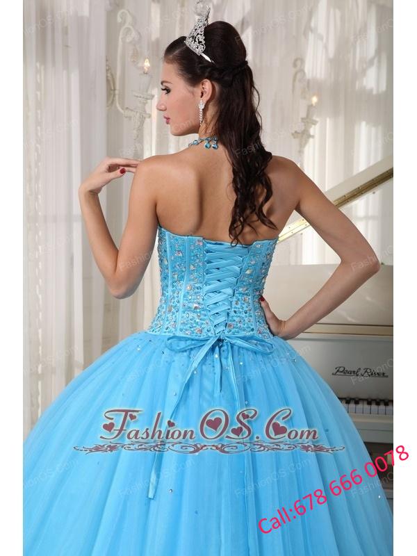 Beautiful Sky Blue Quinceanera Dress Sweetheart Tulle Beading Ball Gown