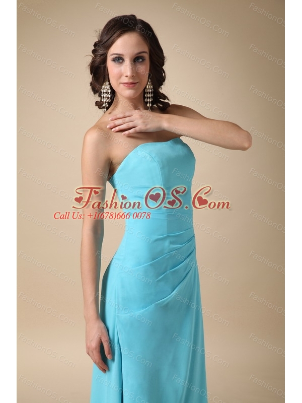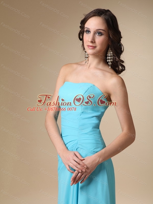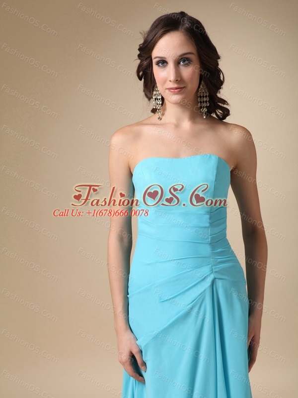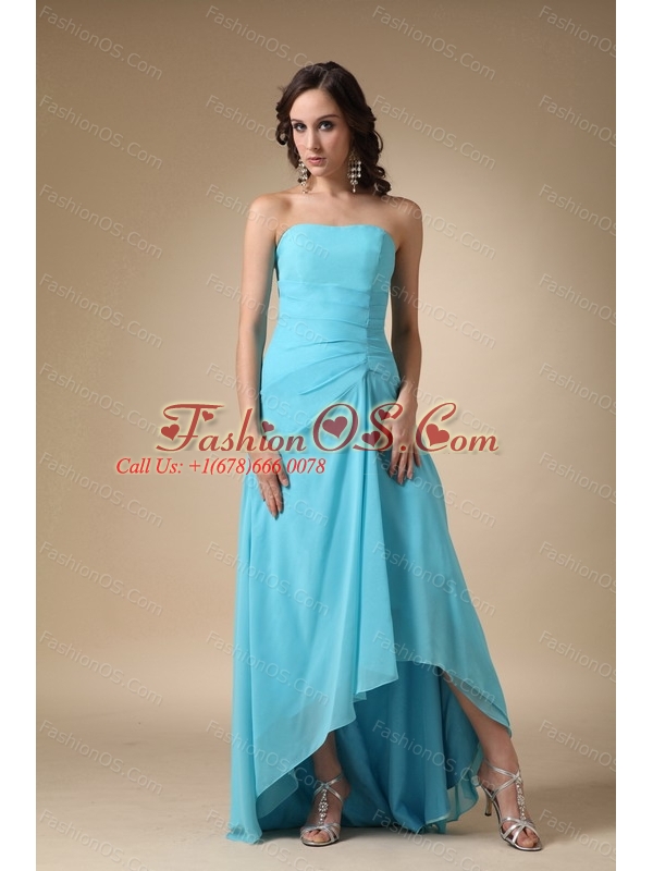 Blue A-line Strapless Long Chiffon Dama Dresses Online