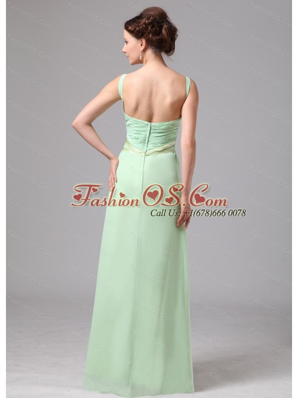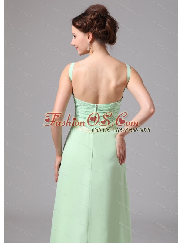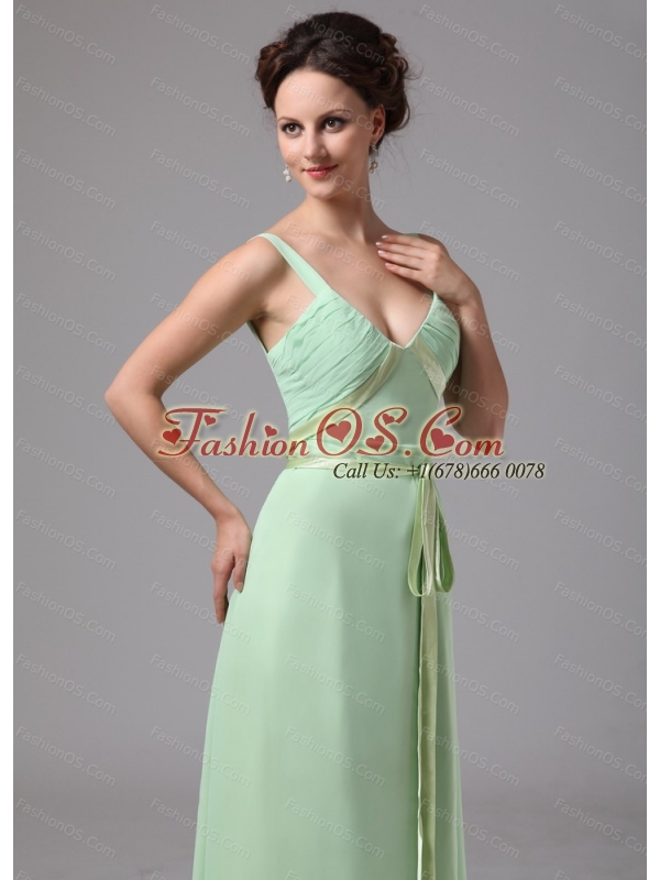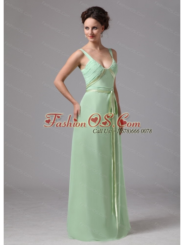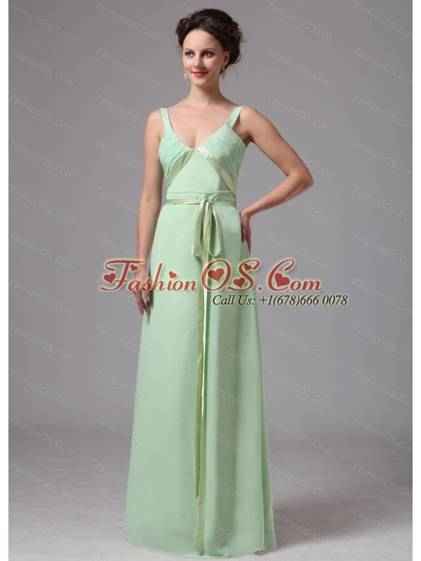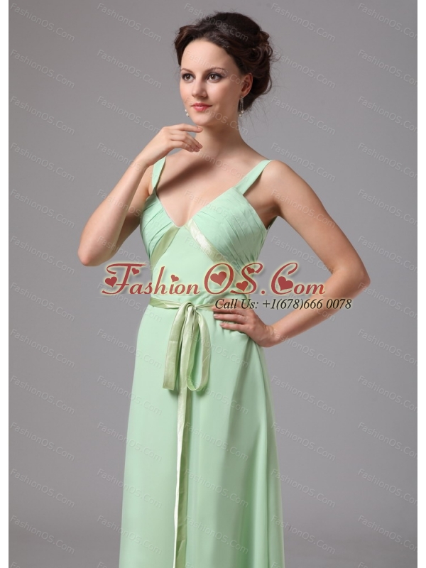 Apple Green Sash V-neck Straps Chiffon Dama Dresses On Sale
