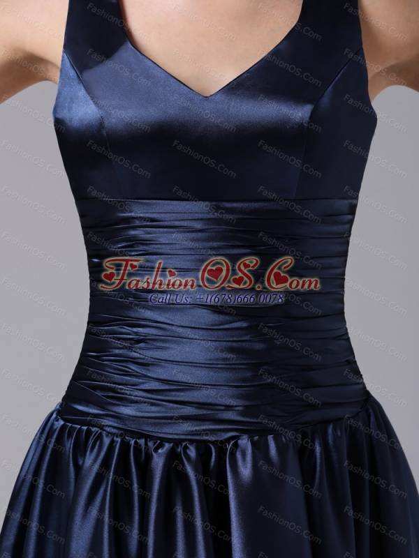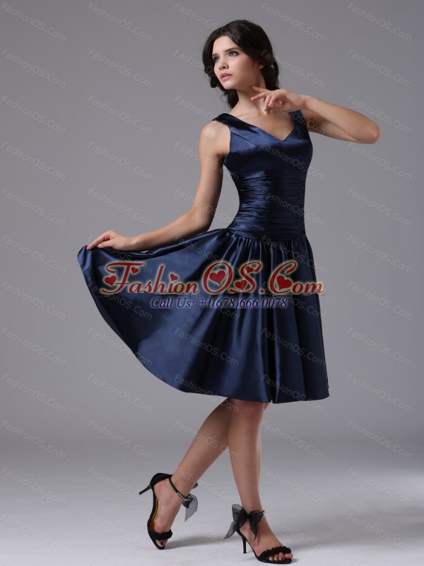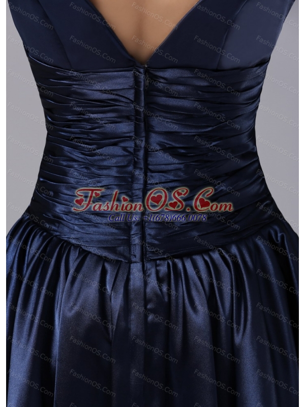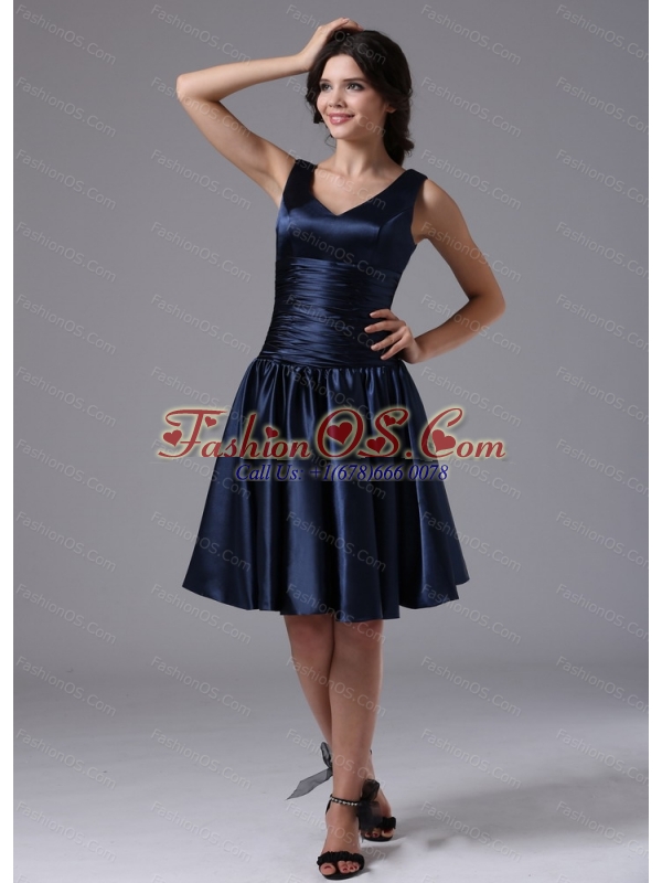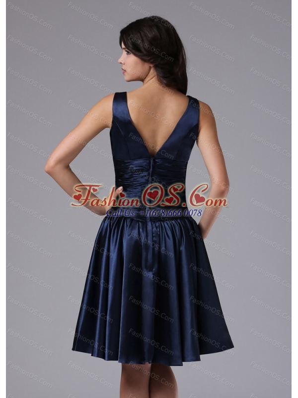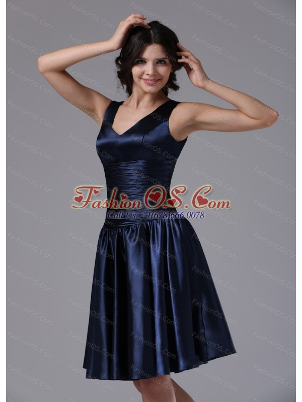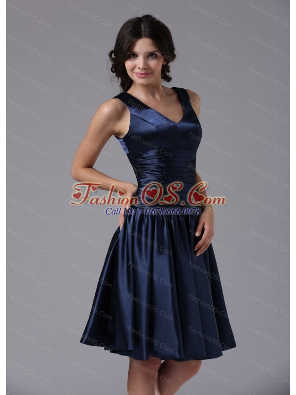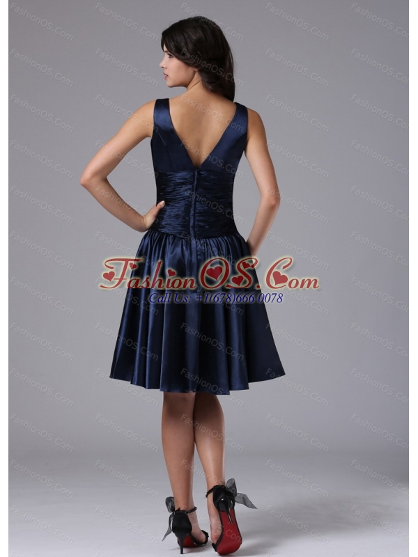 Cheap V-neck Ruch For Navy Blue Short Dama Dresses for Quinceanera