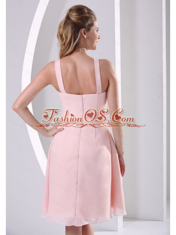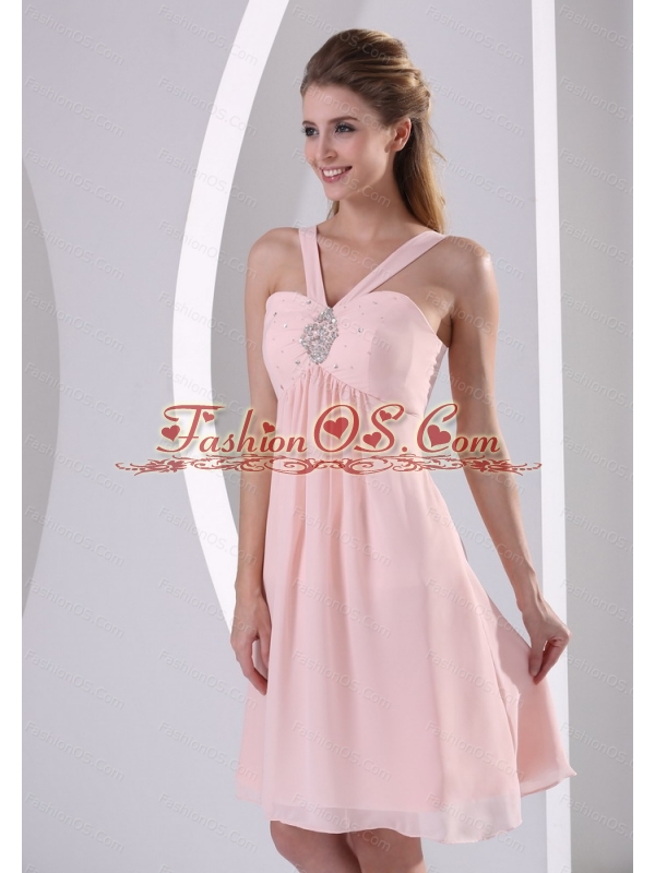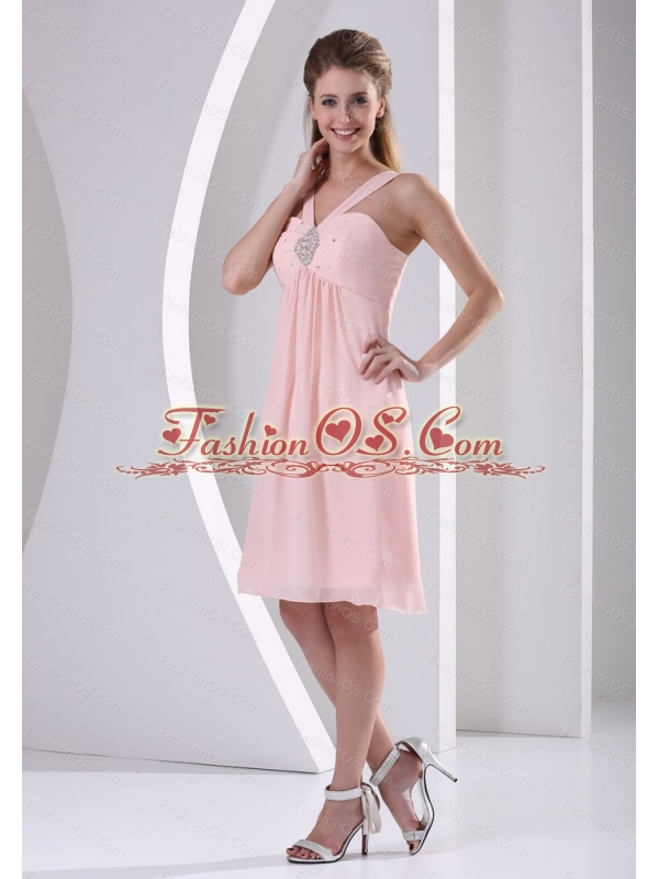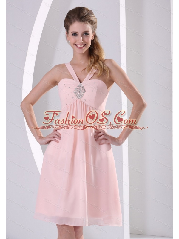 2013 Baby Pink Straps V-neck Short Dama Dresses for Quinceanera With Beading