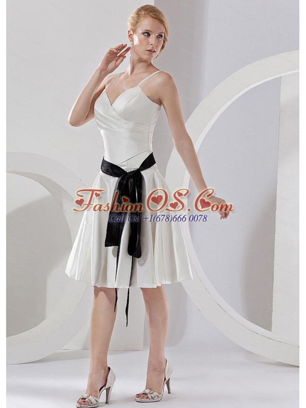 Spaghetti Straps Black Sash Cheap Dama Dress