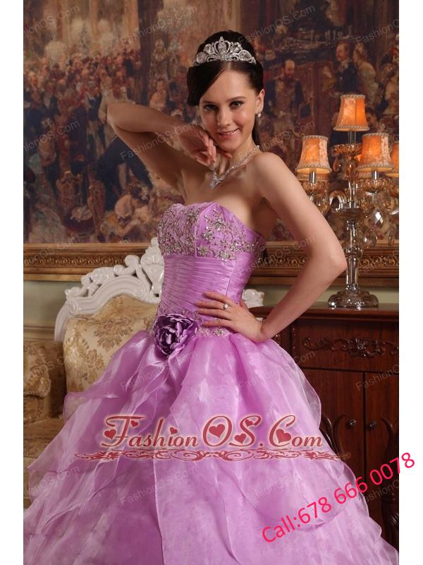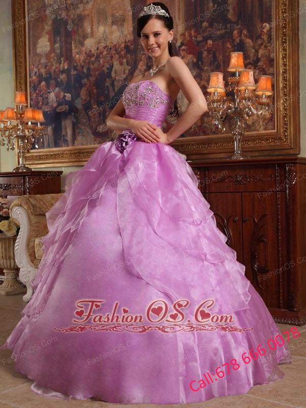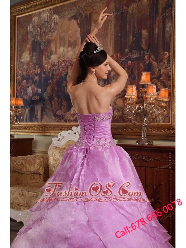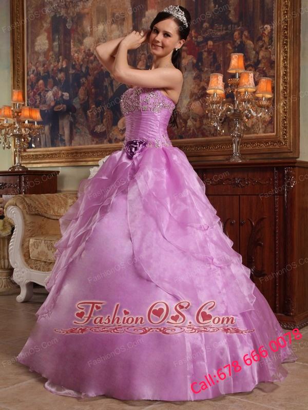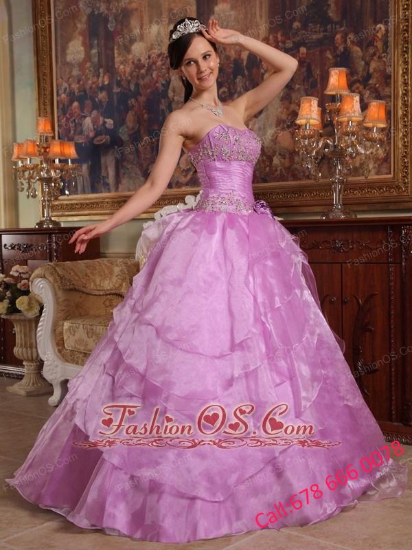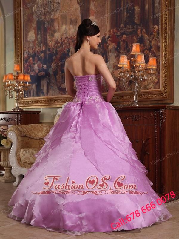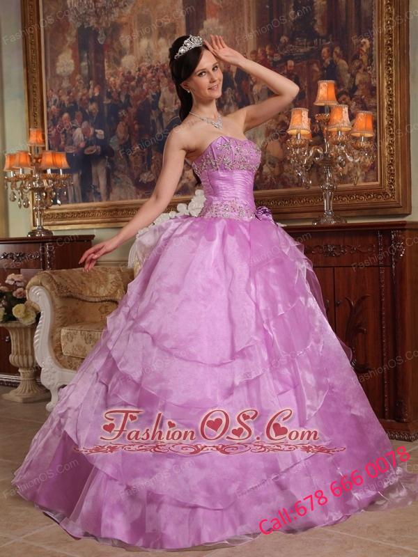 Discount Lavender Quinceanera Dress Strapless Organza Beading Ball Gown