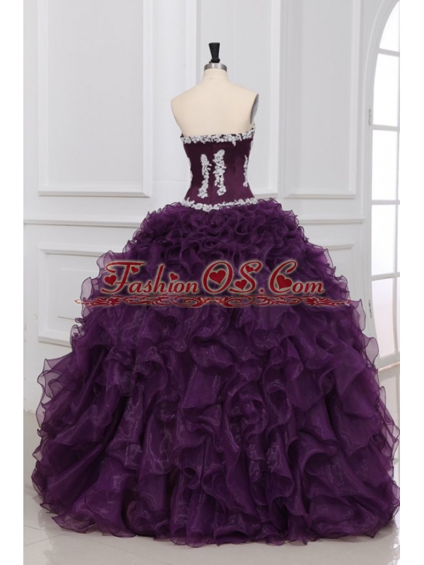 Dark Purple Sweetheart Quinceanera Dress with Appliques and Ruffles