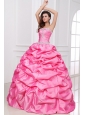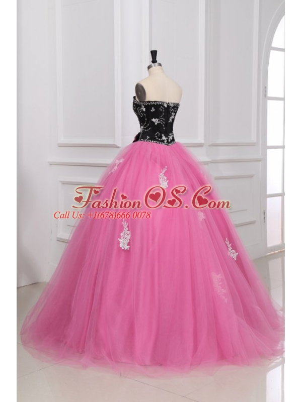 Beading and Appliques Sweetheart Quinceanera Dress in Black and Rose Pink