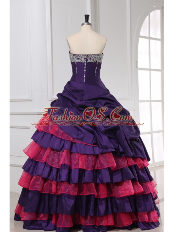 Red and Purple Sweetheart Beading and Ruffles Layered Quinceanera Dress