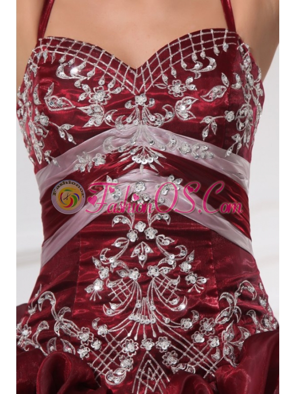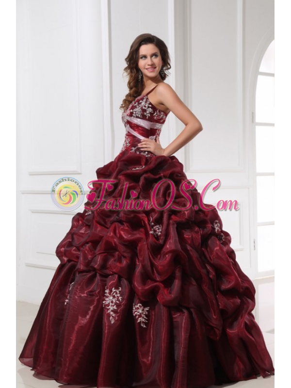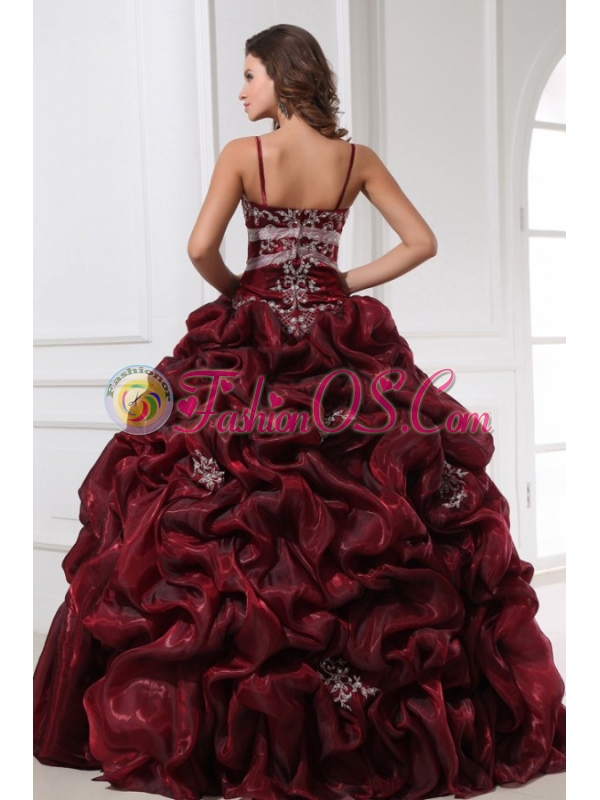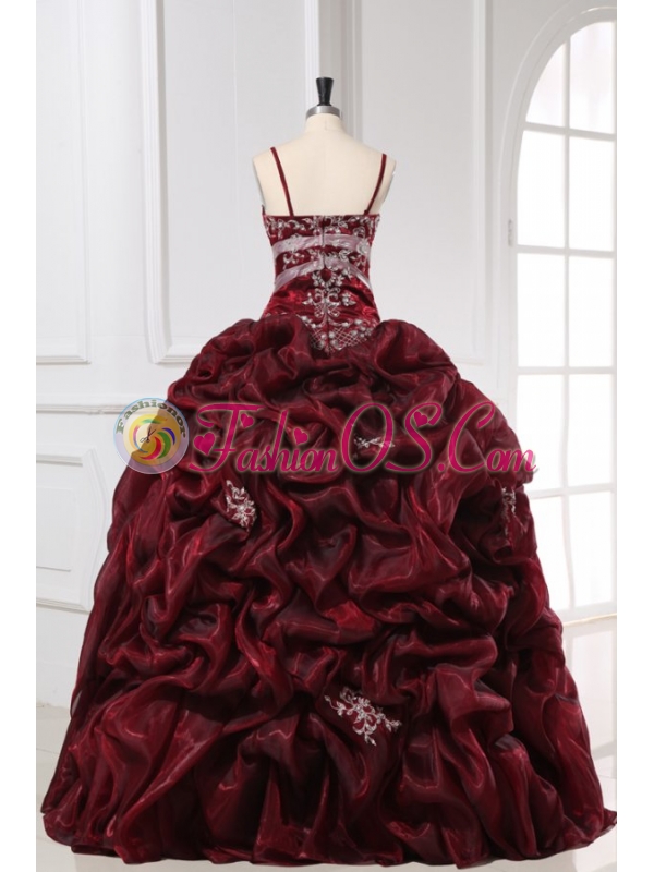 Spaghetti Straps Burgundy Long Quinceanera Dress with Appliques