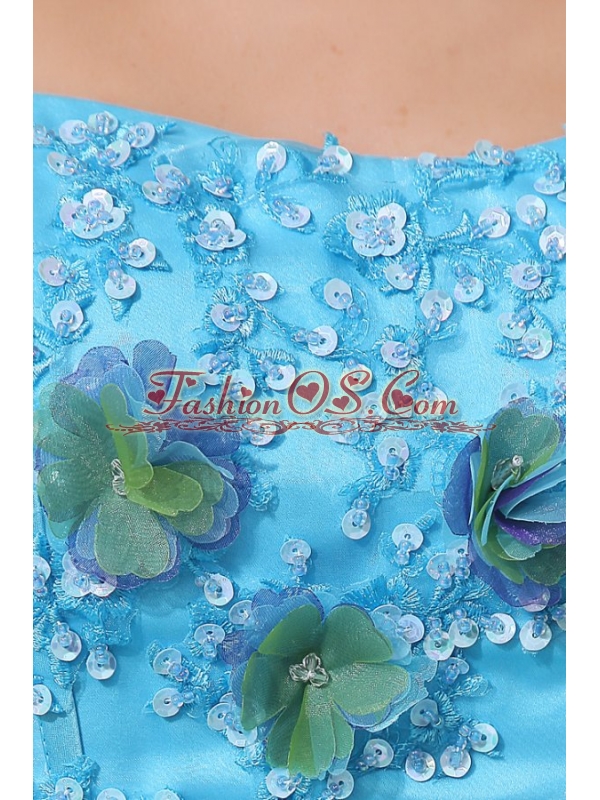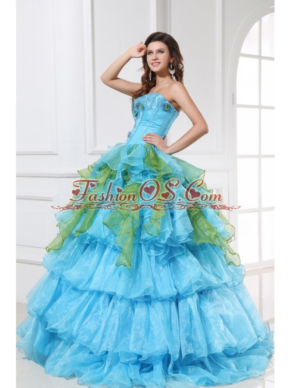 Appliques with Sequins Organza Long Quinceanera Dress in Aqua Blue