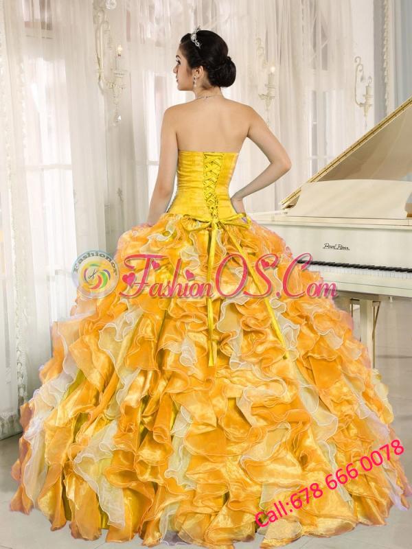 Custom Made For 2013 Yellow Puffy Quinceanera Dresses with Beaded and Ruffles