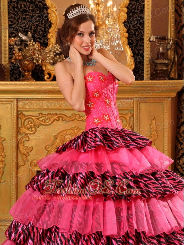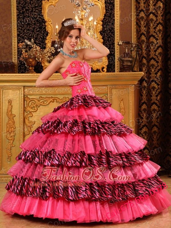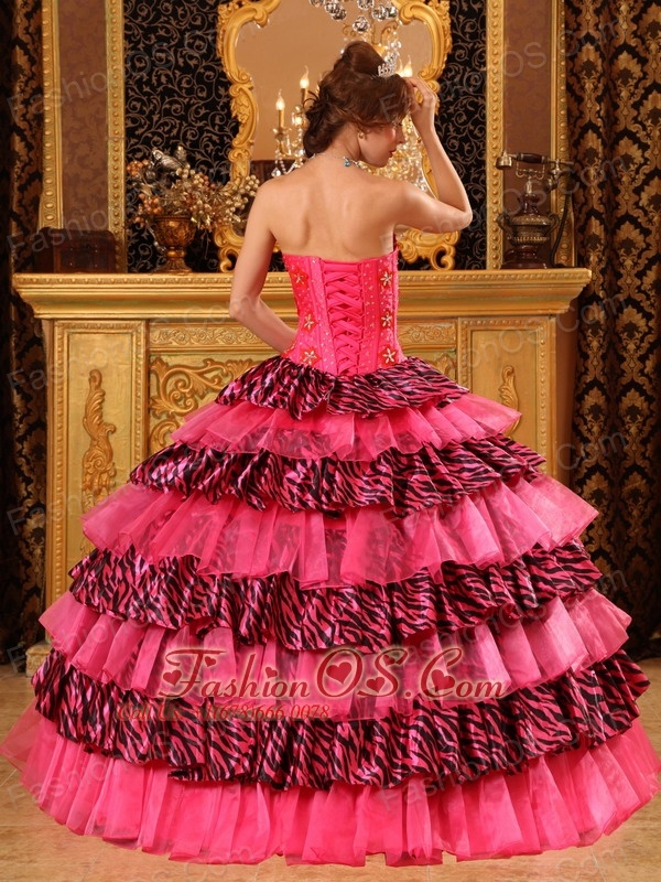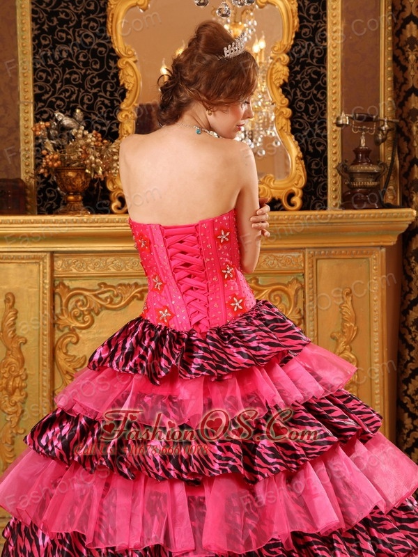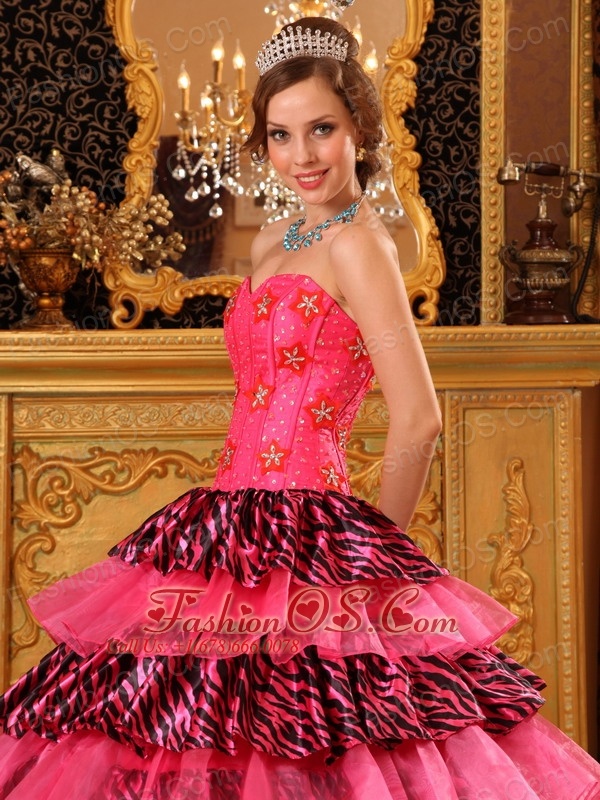 Beautiful Hot Pink Quinceanera Dress Ball Gown Sweetheart Organza and Zebra Beading
