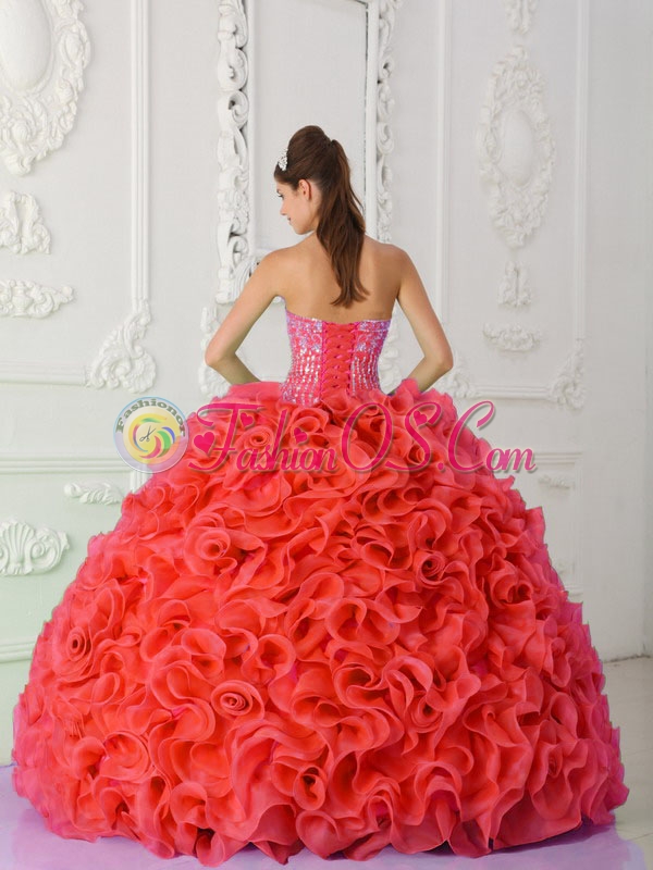 Ball Gown Strapless Red Quinceanera Dresses 2014 with Beading and Ruffles