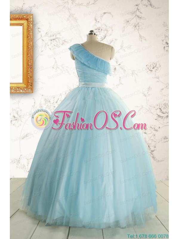 Romantic One Shoulder Light Blue Quinceanera Dress for 2015