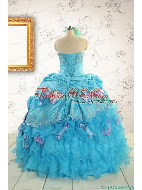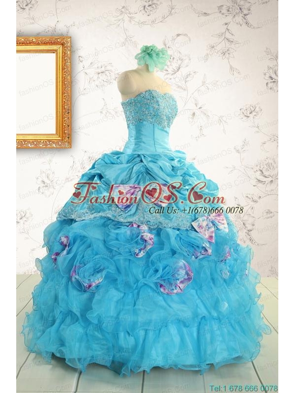 2015 Cheap Aqua Blue Appliques Quinceanera Dresses with Appliques