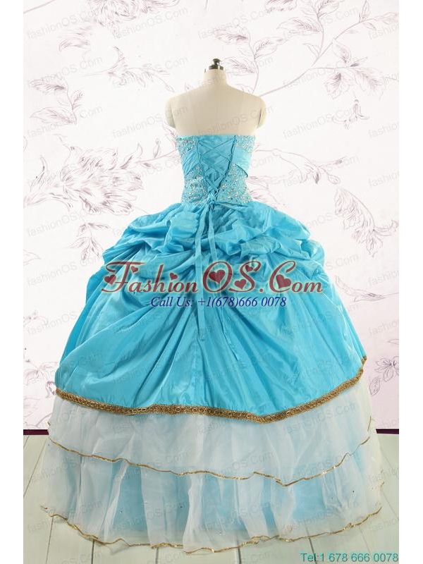 Custom Made Sweetheart Aqua Blue Quinceanea Dresses with Beading