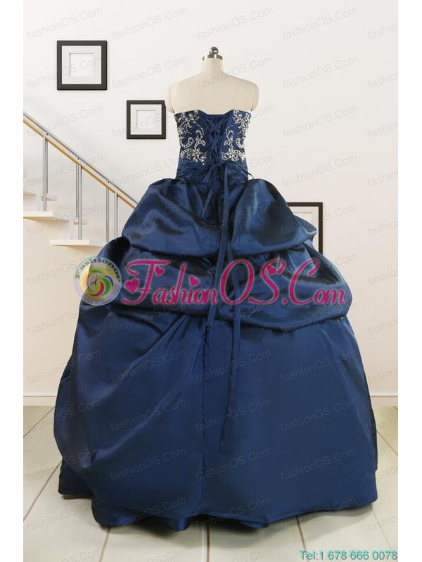 Custom Made Navy Blue Embroidery Quinceanera Dresses with Appliques