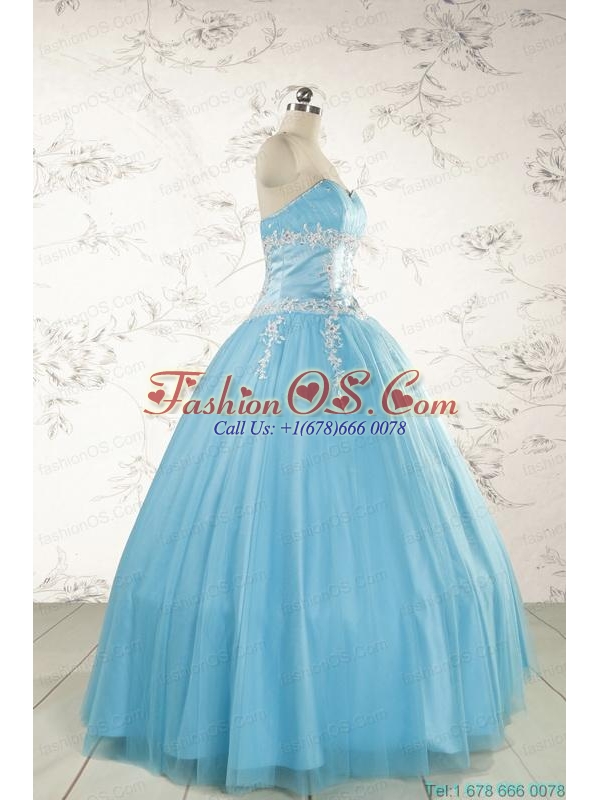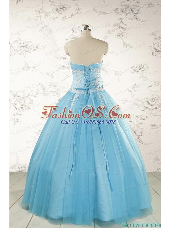Pretty Beading and Appliques Quinceanera Dresses in Aqua Blue for 2015
