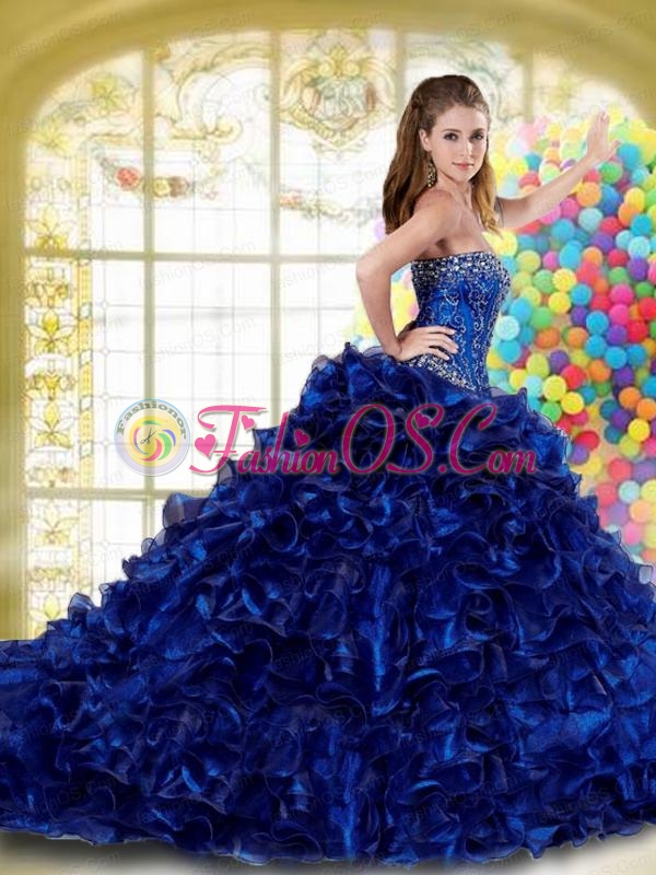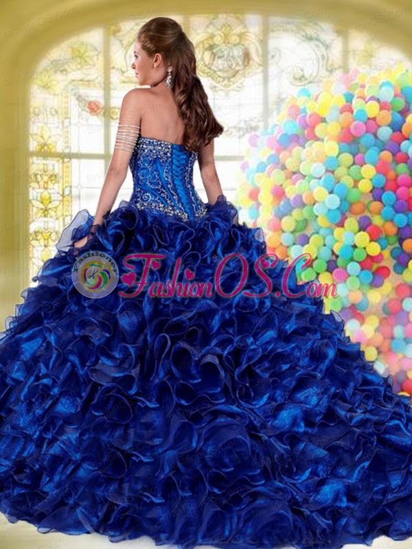 Wonderful Sweetheart Beading and Ruffles Royal Blue Quinceanera Dress