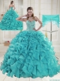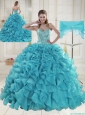 2015 Sweetheart Aqua Blue Quinceanera Dresses with Ruffles and Beading