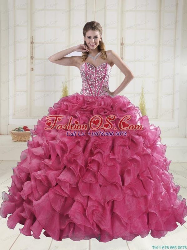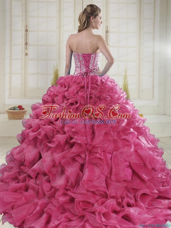 2015 Hot Sale Red Quinceanera Gowns with Beading