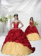 New Style 2015 Appliques Brush Train Wine Red and Yellow Princesita Dress