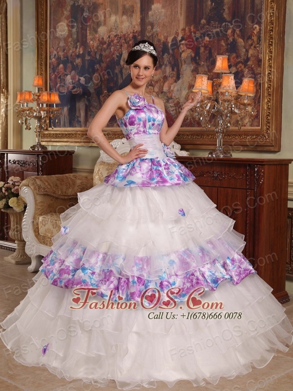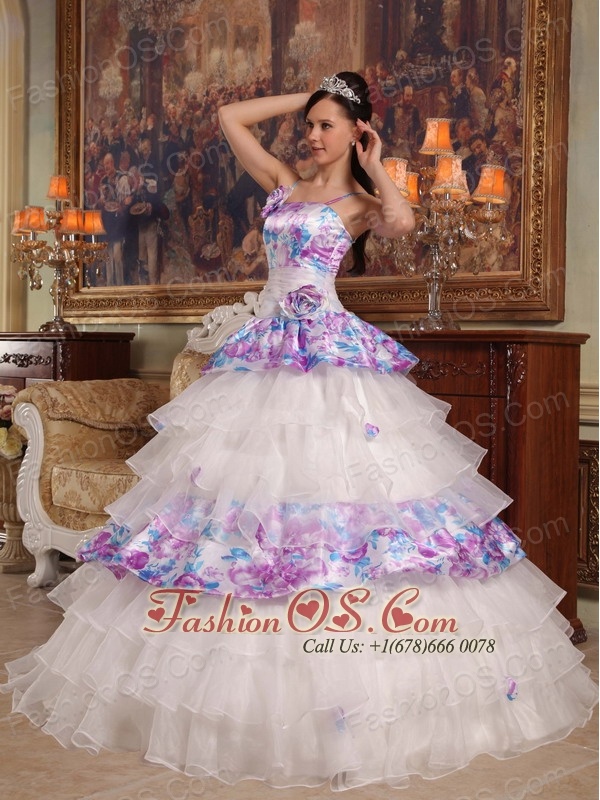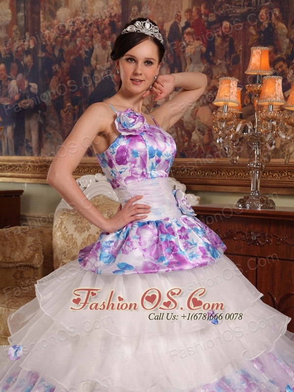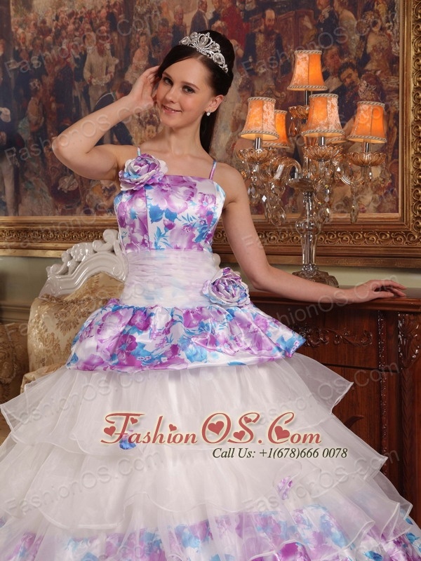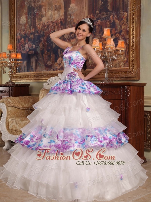 Elegant Quinceanera Dress Straps Hand Flowers Organza and Printing Ball Gown