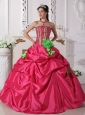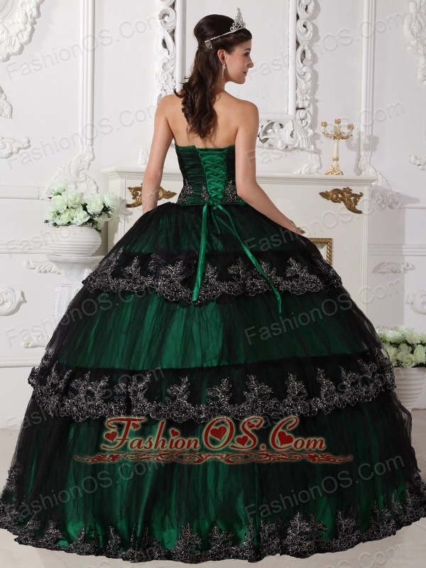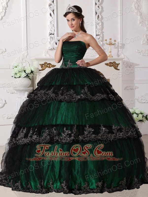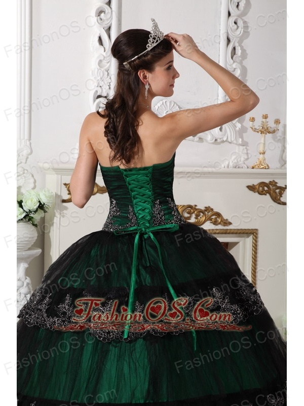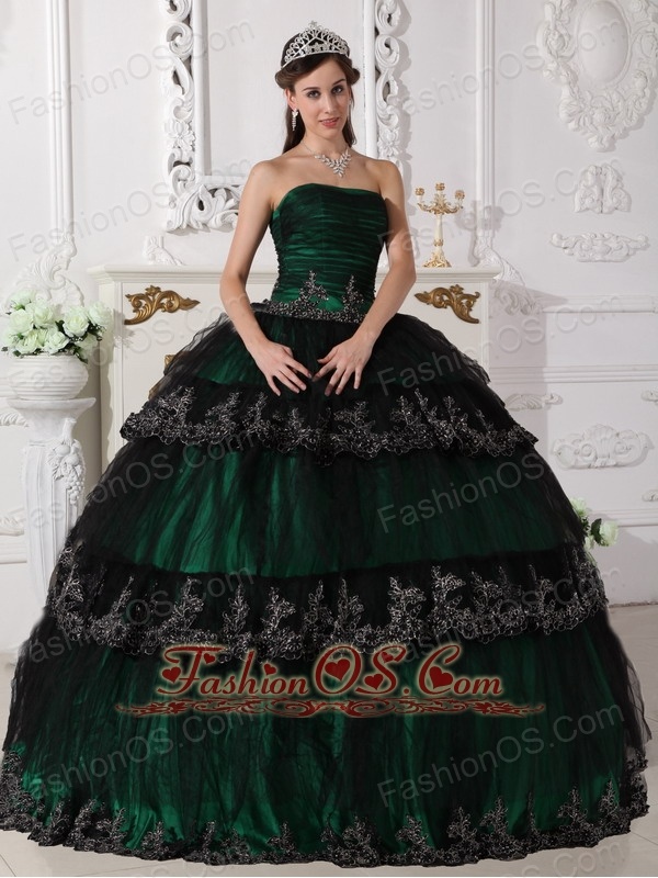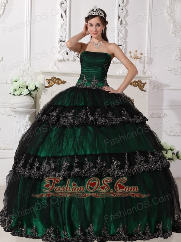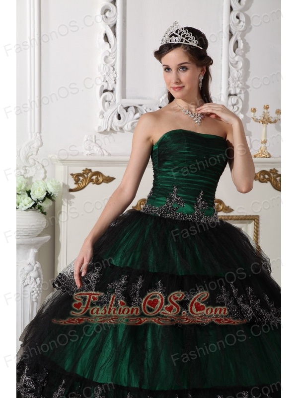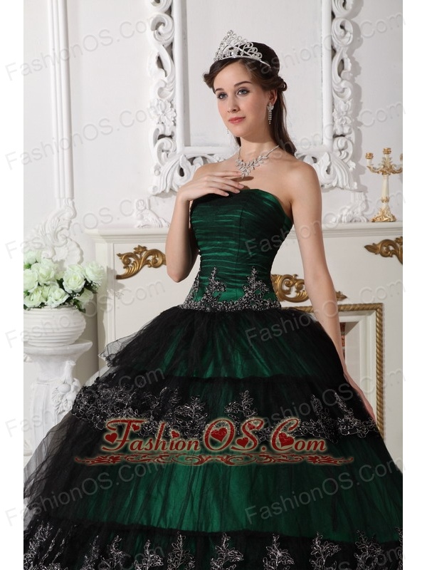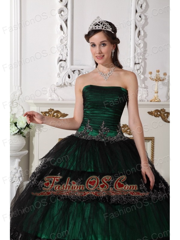Dark Green Quinceanera Dress Strapless Taffeta and Tulle Appliques Ball Gown