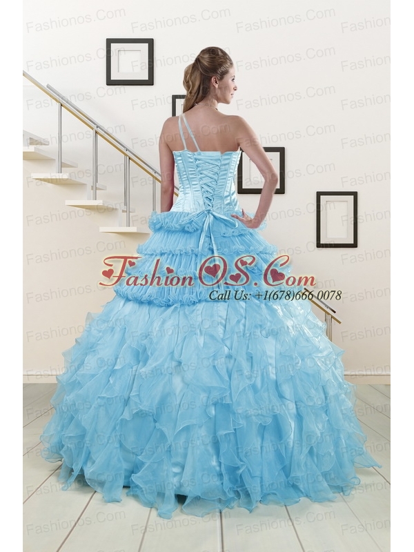 2015 Pretty Baby Blue Sweet 15 Dresses with Beading