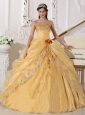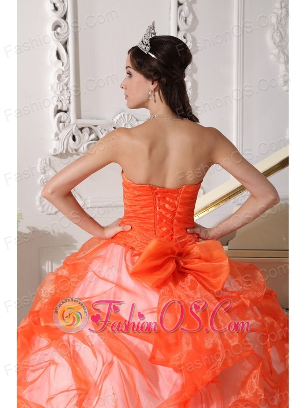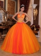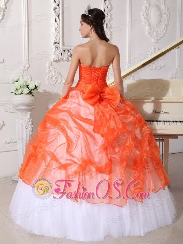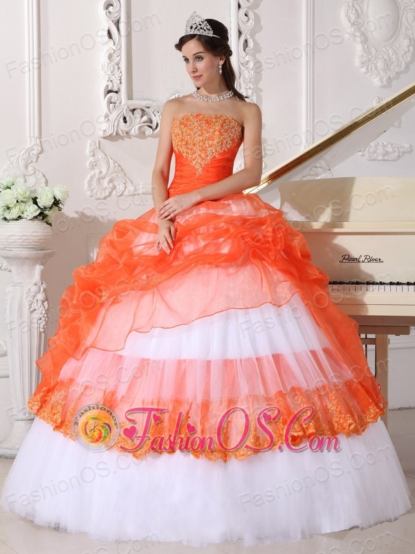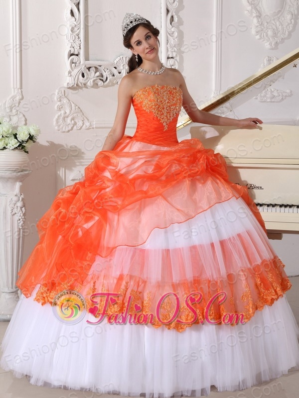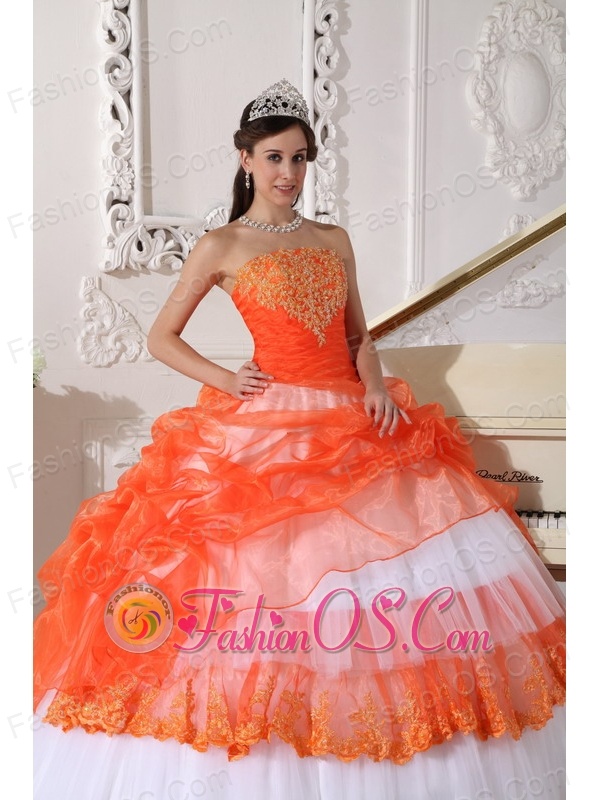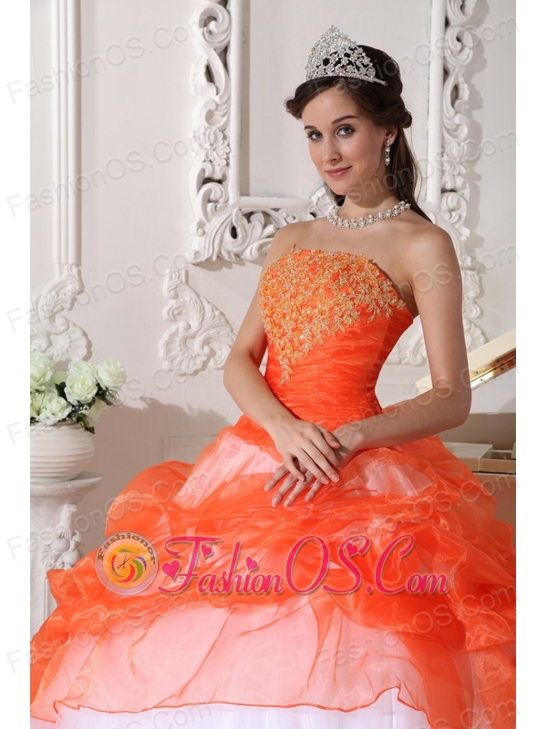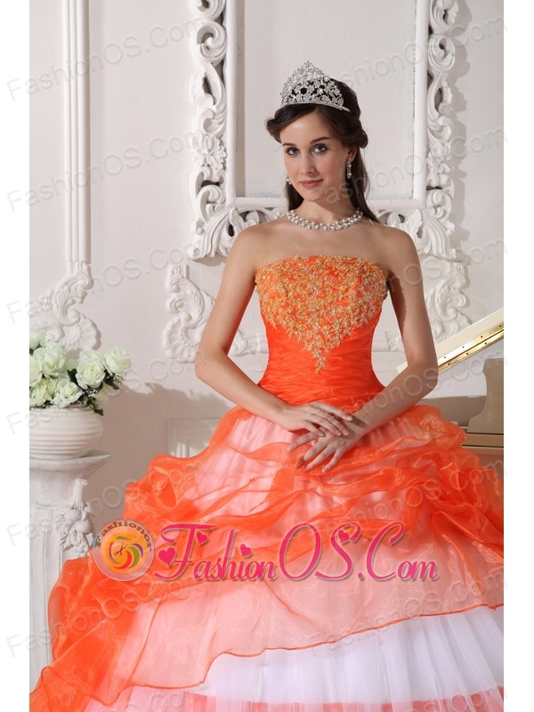 Beautiful Orange and White Quinceanera Dress StraplessTaffeta and Organza Appliques Ball Gown
