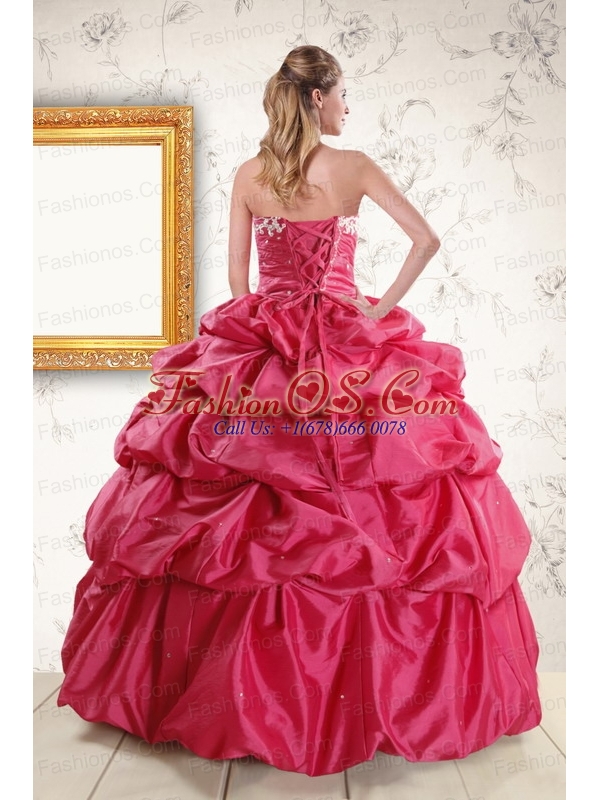 Appliques 2015 Hot Pink Quinceanera Dresses with Lace Up