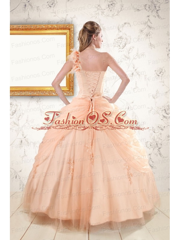 2015 Pretty One Shoulder Appliques Quinceanera Dress in Peach