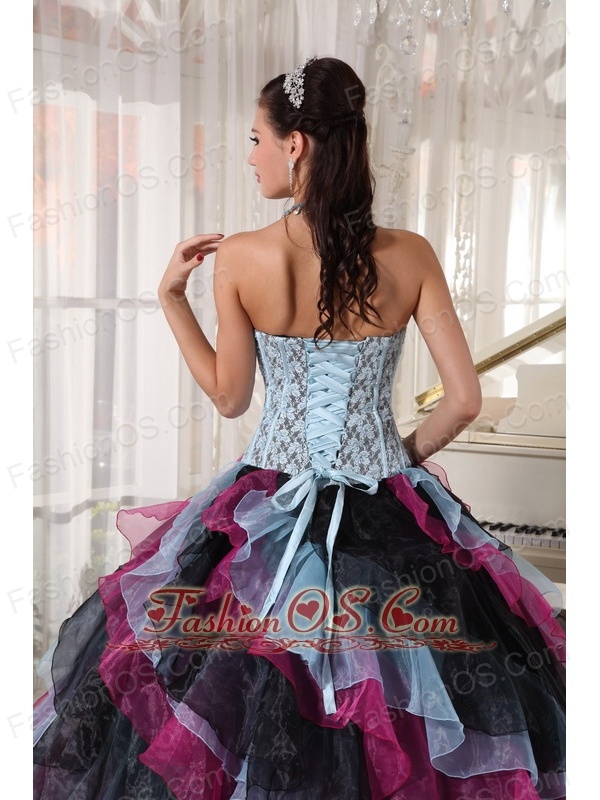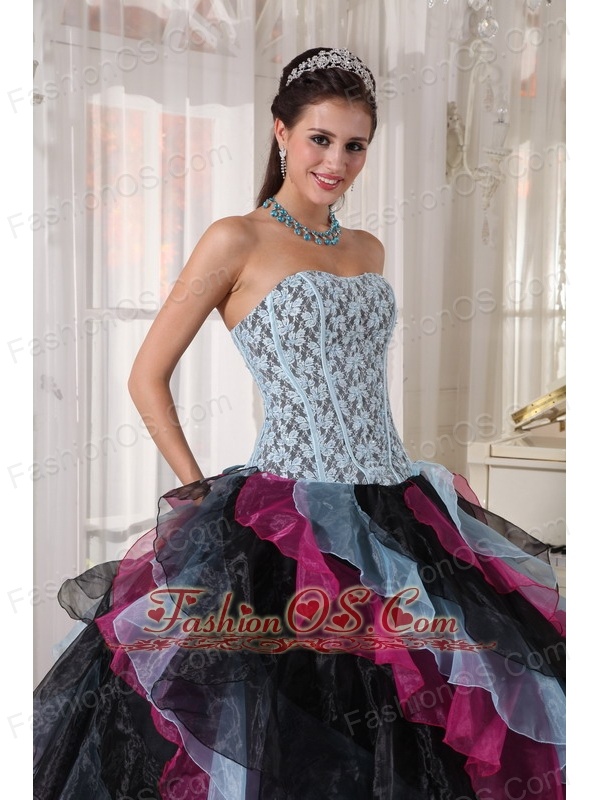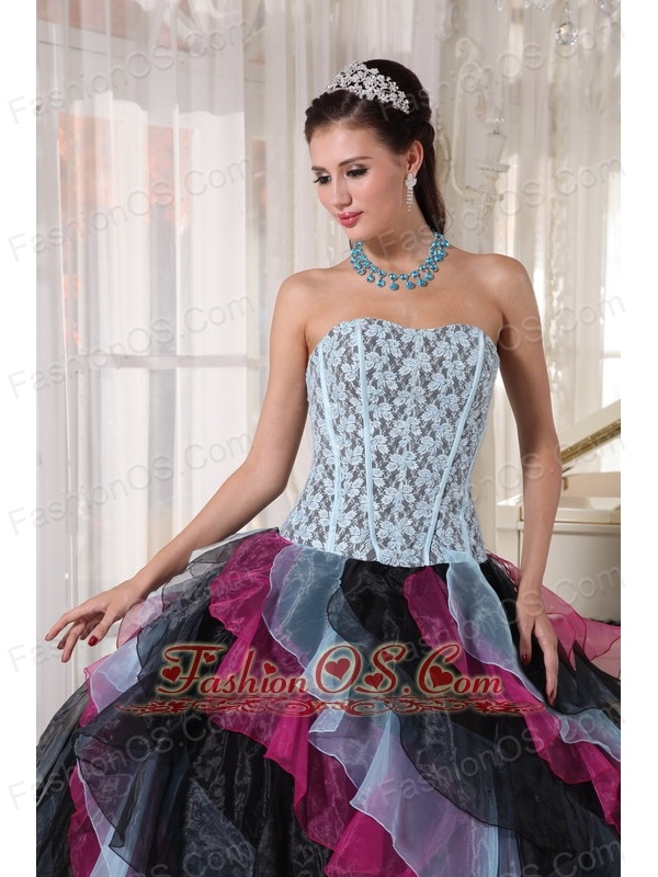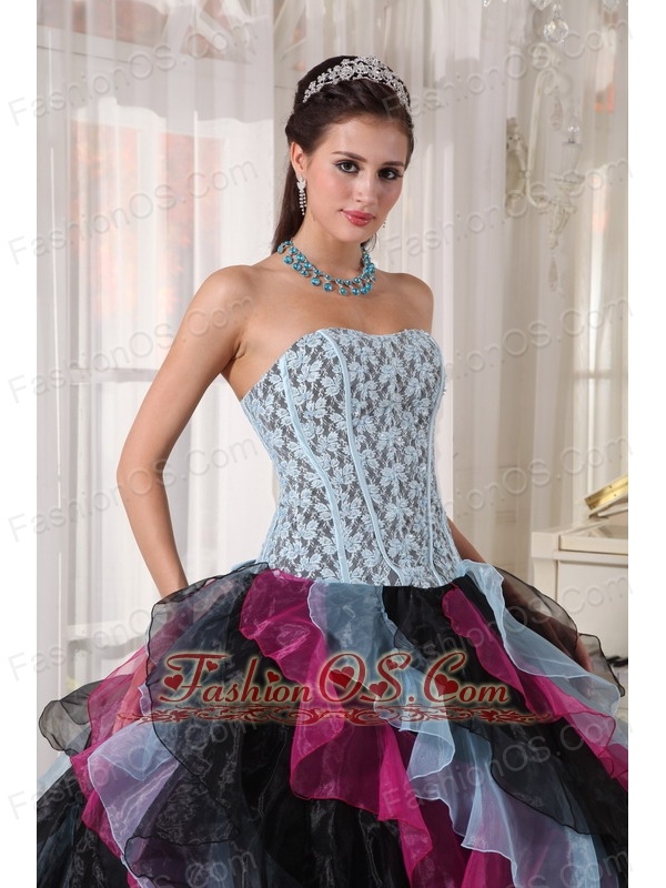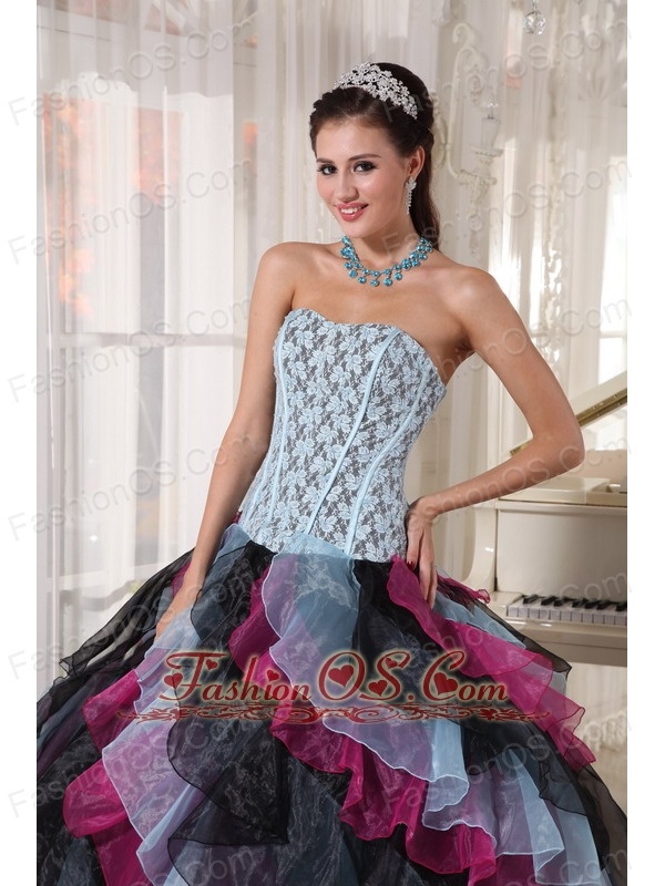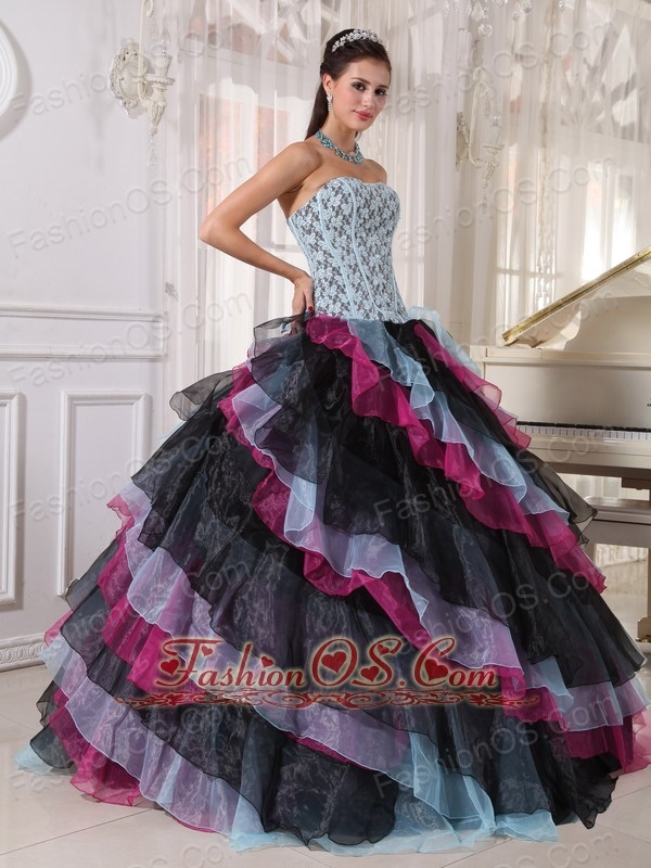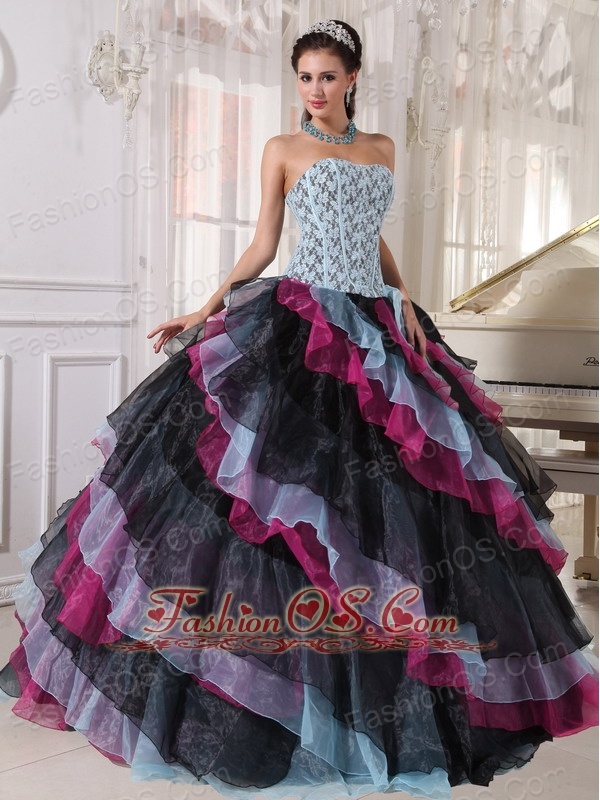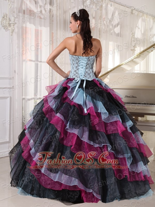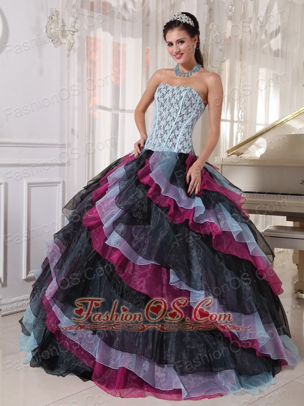 Beautiful Multi-color Quinceanera Dress Strapless Organza Appliques With Beading Ball Gown