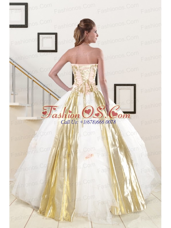Popular Strapless White 2015 Quinceanera Dresses with Appliques