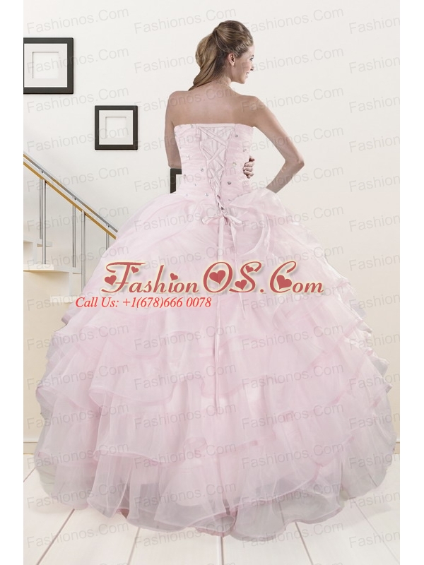 2015 Cute Baby Pink Quinceanera Dresses with Beading and Ruffles