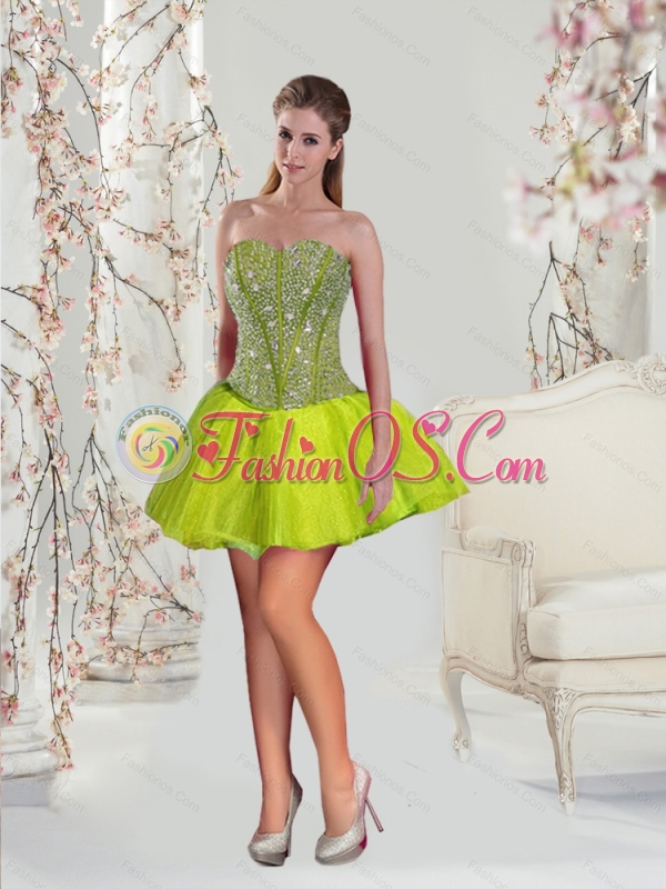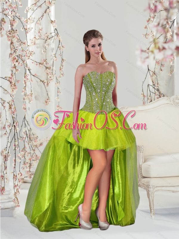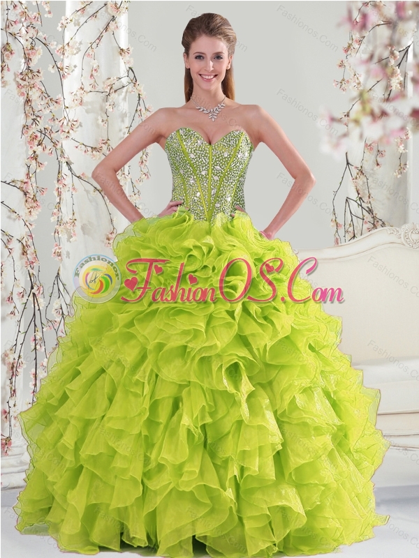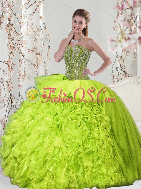 2015 Detachable Beading and Ruffles Yellow Green Dresses for Quince