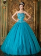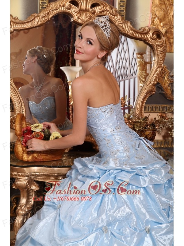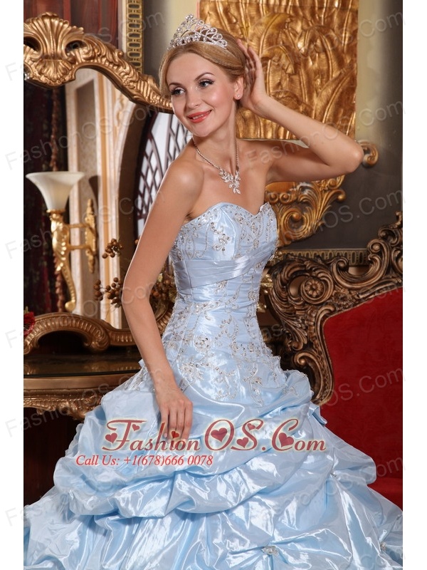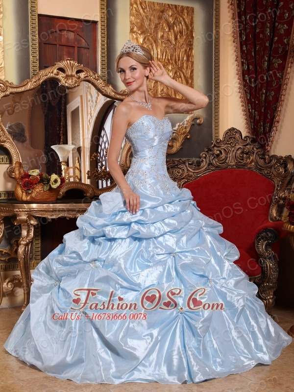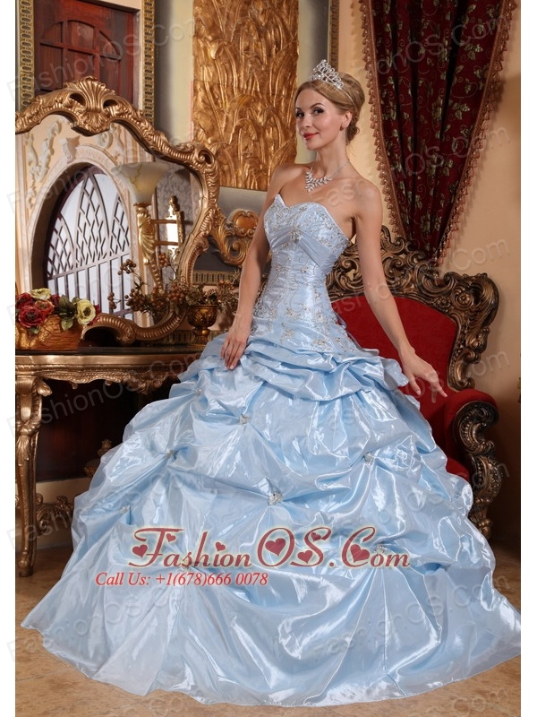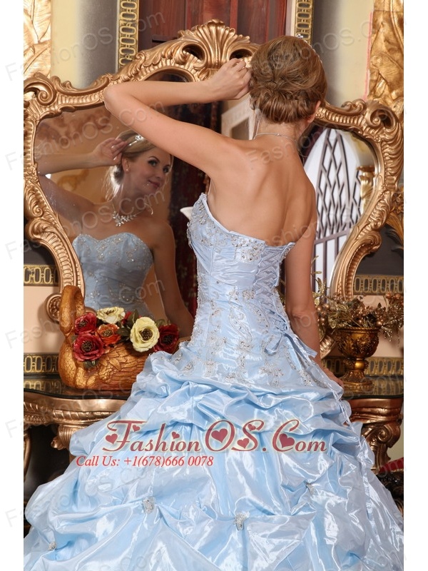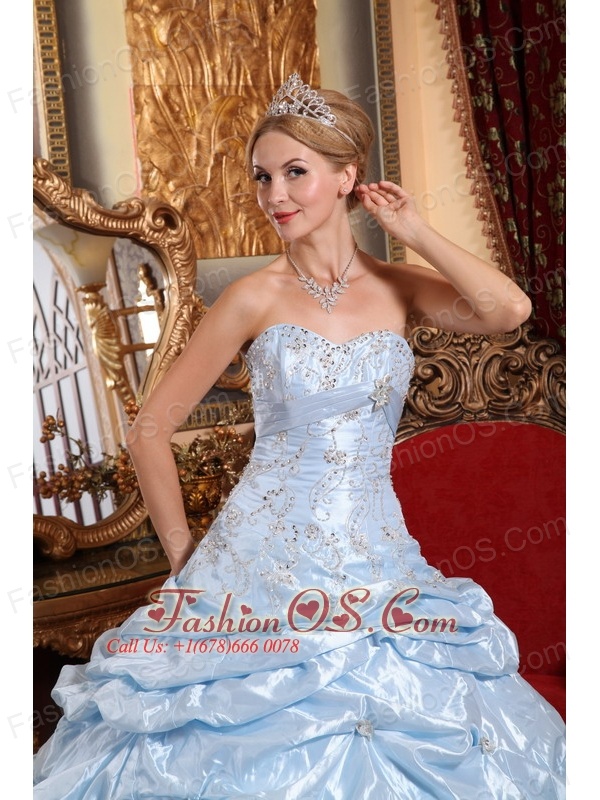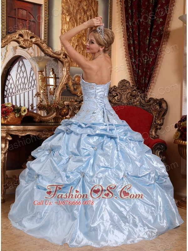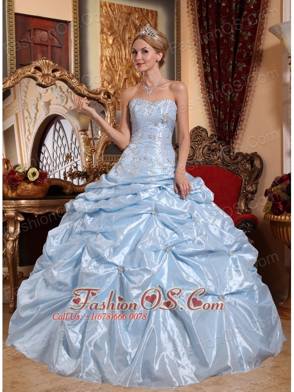 Discount Baby Blue Sweet 16 Dress Sweetheart Taffeta Embroidery with Beading Ball Gown