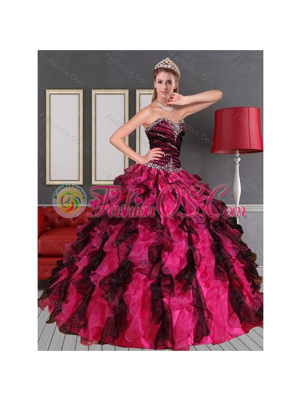 2015 Sweetheart Beaded and Ruffled Sweet 15 Dress in Multi Color