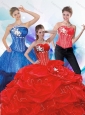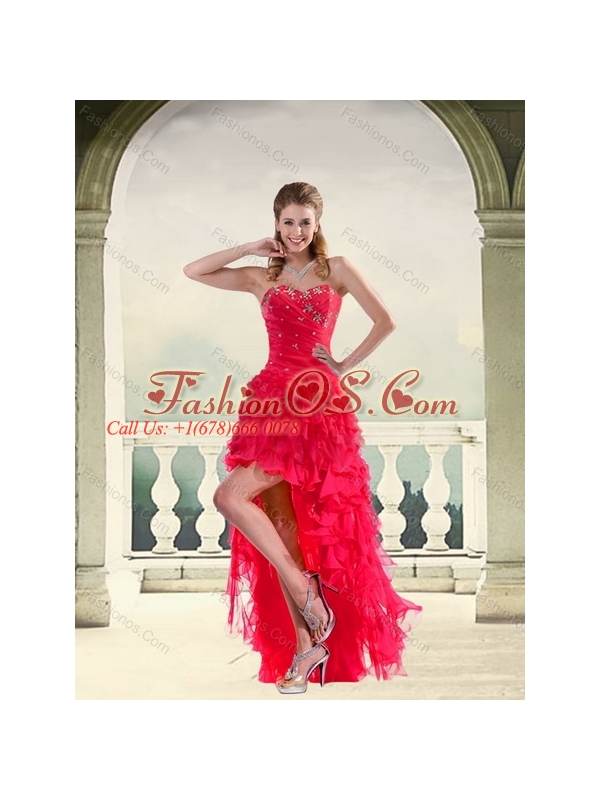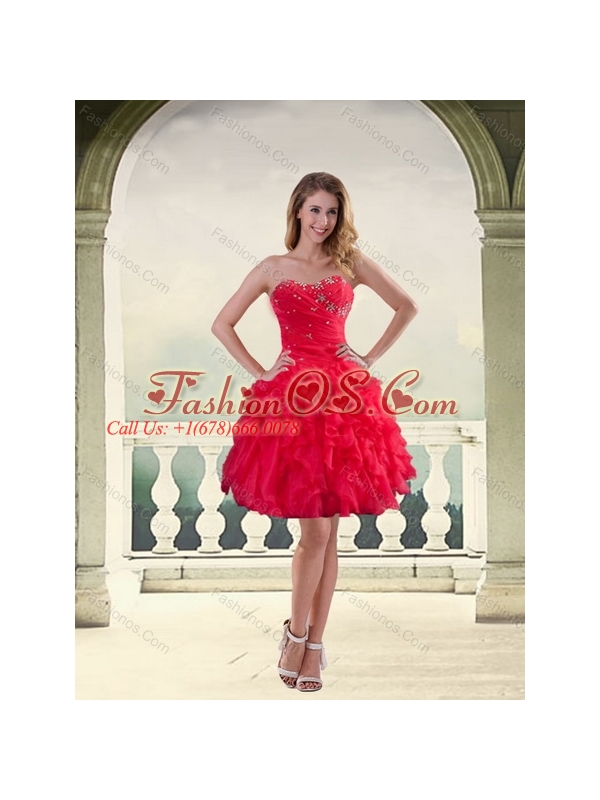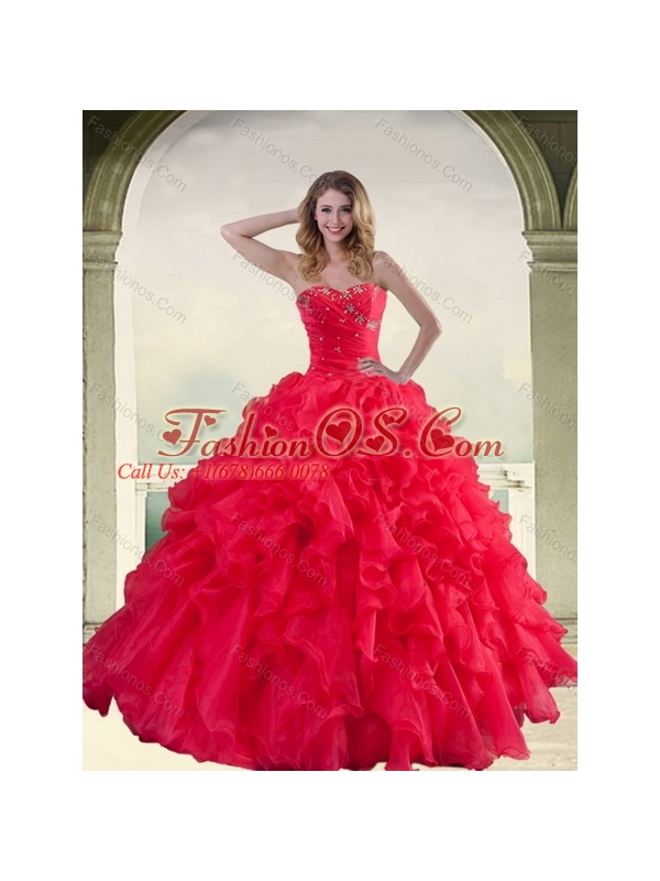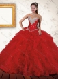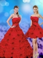 Red Strapless Quinceanera Dress with Ruffles and Beading