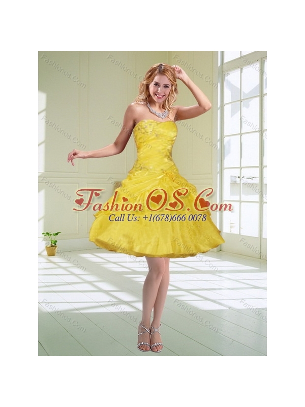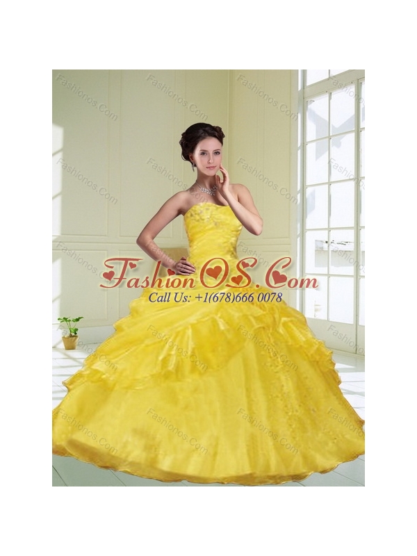 Cute Yellow Strapless Quinceanera Dresses with Beading for 2015