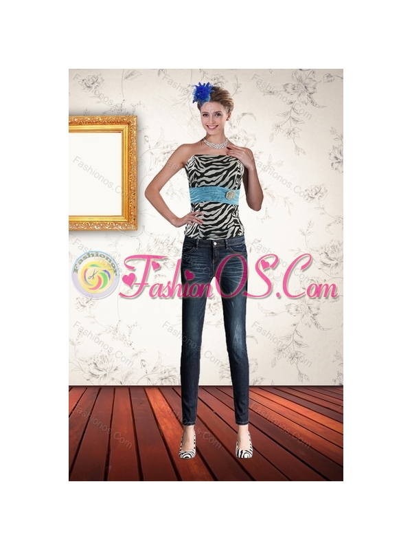 Zebra Print Strapless Multi Color Sweet 15 Dresses with Ruffles and Pick Ups