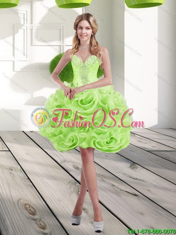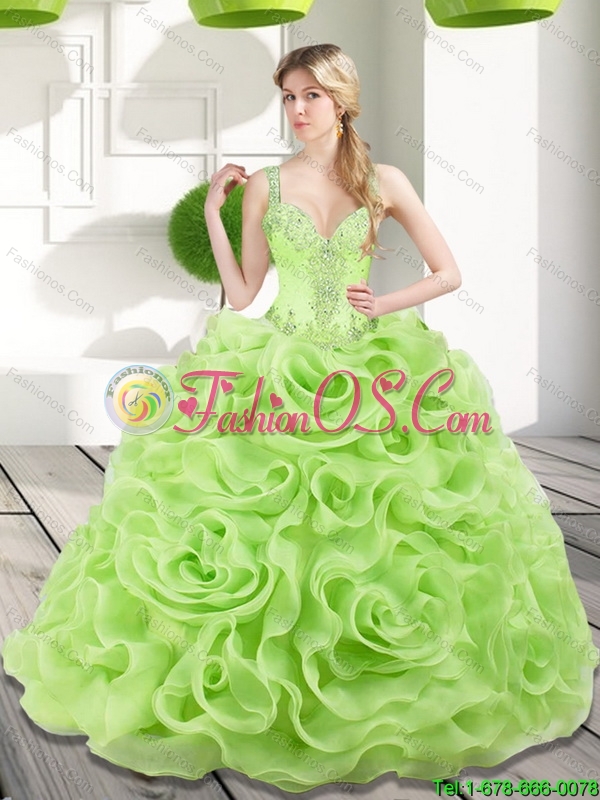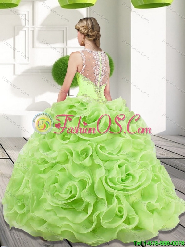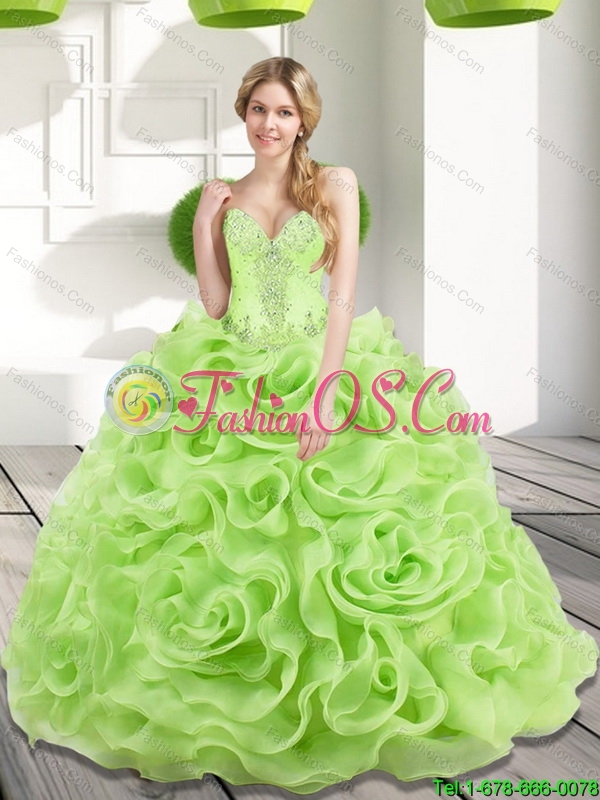Modest Spring Green 15 Quinceanera Dresses with Beading and Rolling Flowers