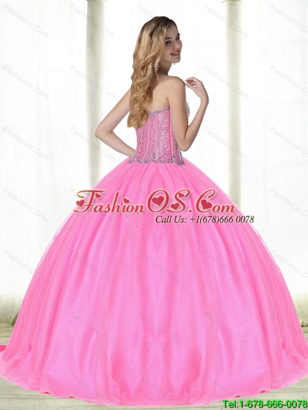 Beautiful Sweetheart Quinceanera Dresses with Beading in Pink For 2015 Summer