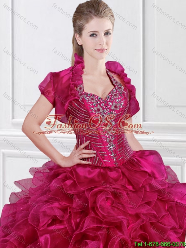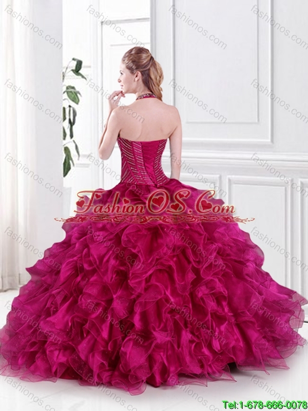 2016 Luxurious Ball Gown Halter Top Beaded Sweet 15 Dresses in Wine Red